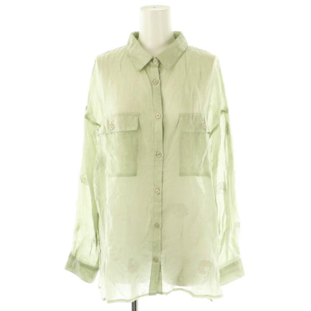 【中古】スカラー ScoLar シアー ブラウス シャツ ロゴプリント M スモークグリーン /ES ■OS レディース