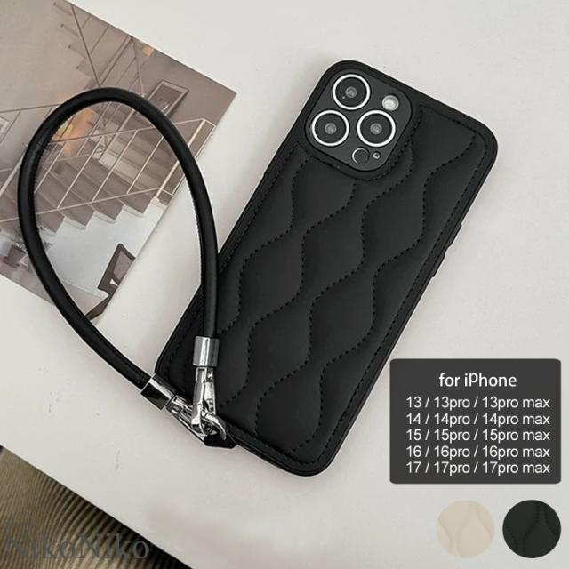 全品送料無料一部除く ハンドストラップ キルティング スマホケース ma 【即納】 iPhone スマホカバー iPhoneカバー 13 14 15 16 シリコン ソフトケース 韓国スマホケース ぷくぷく ベージュ ブラック 黒 レディース 韓国 流行り トレンド かわいい