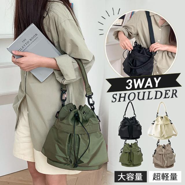 ショルダーバッグ レディース 巾着バッグ 3way 肩掛け 斜め掛け 手提げ 大容量 多収納 ハンドバッグ 大きめ A4 軽量 通