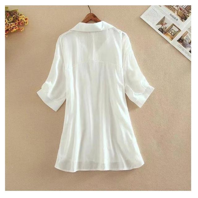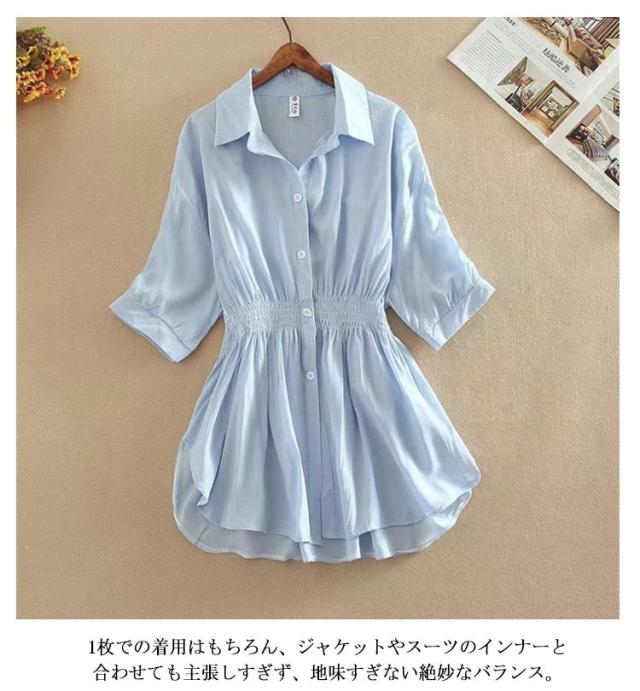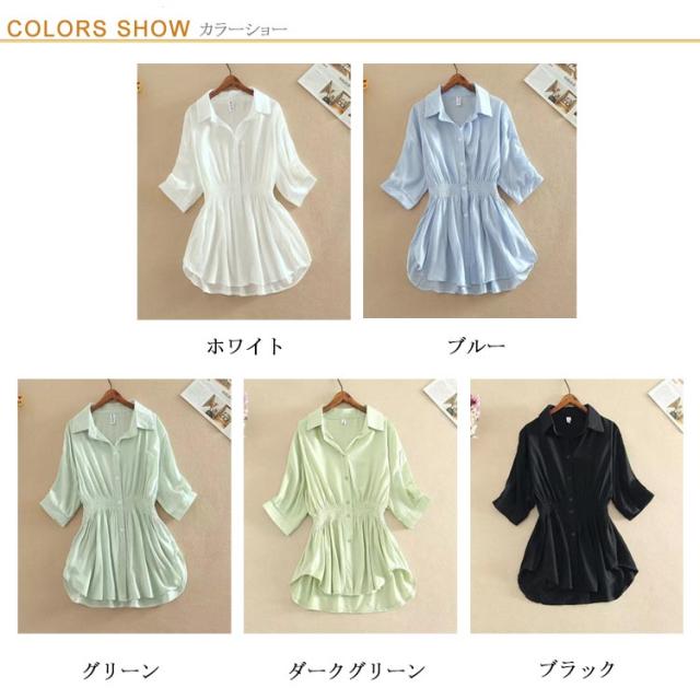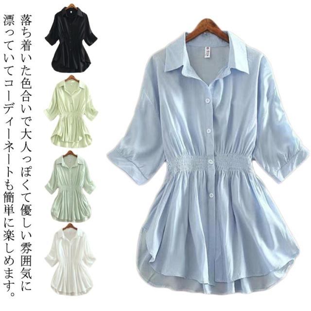ブラウス レディース 春 夏 七分袖 長袖シャツ トップス シャツ シファン 薄手 体型カバー 大きいサイズ きれいめ ゆったり 襟付き 夏服 事務服 ナチュラル Tシャツ 大人 ロングシャツ 春夏 オフィス 通勤 20代 30代 40代 50代 おしゃれ カジュアル