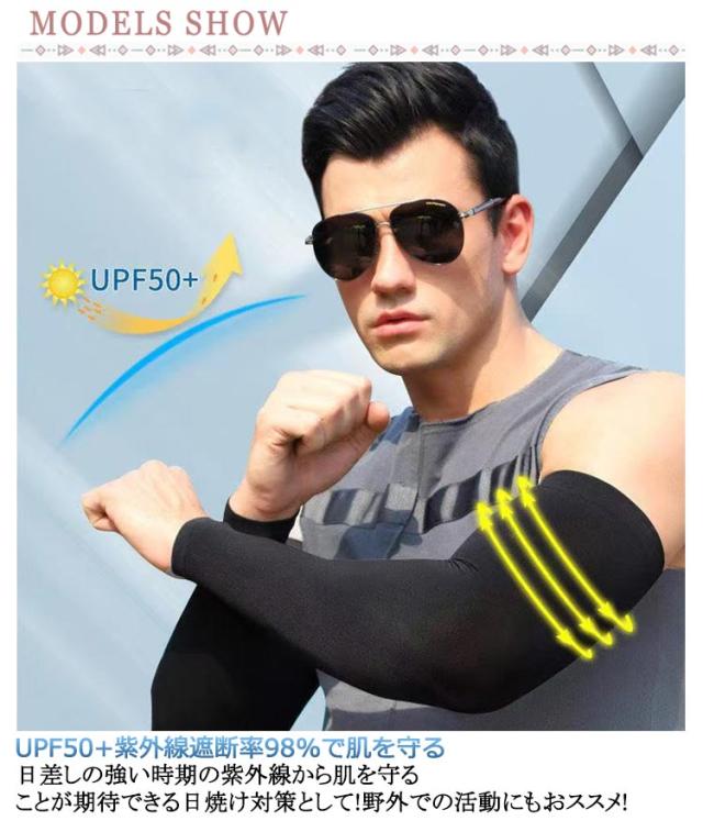 | UVカット率99% 接触冷感 UPF50+ 暑い日のスポーツシーンに最適なメンズアームカバー 【触った瞬間ひんやり】接触冷感の材質を採用して、汗をかいたり水に触れたりした時、氷水と洋の満れが熱の作用を気化させ、気化吸熱原理に基づいて。冷却効果があります。 【UPF50+紫外線遮断率?98%で肌を守る!】日差しの強い時期の紫外線から肌を守ることが期待できる日焼け対策として!野外での活動にもおススメ! 【ズレ落ち防止】引き締めるデザイン、手や肘の曲げ伸ばしによるずリ上がりやずり落ちりの心配がなし! 【伸縮性・通気性抜群】伸縮性にも優れ多様な腕にもフィット◎ さらに通気性も抜群で速乾性も抜群なので快適に着用できます! 【毛玉になりにくい】高品質なアイスシルク生地を使用することで引っかかりによる毛玉を防止します。 【色んな場面で使いやすい!】シンプルなデザインで普段使いはもちろんスポーツ等様々なシーンで使いやすい!夏場でも野外での活動快適に過ごせるようサポート! | |