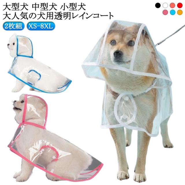送料無料 犬用透明レインコート 大型犬 中型犬 レインポンチョ ポンチョ型 ドッグウェア 2枚組 雨具 レインウェア フード付き 帽子付き 小型犬 犬服 ペット服 梅雨 雨対策 安全 お散歩 雨除け イヌ ドッグ DOG