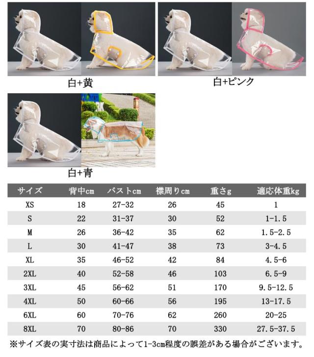 | 2枚組!大型犬 中型犬 小型犬 大人気の犬用透明レインコート。 安全なプラスチック素材のペット雨具。 着せ易いポンチョタイプ。 雨の日や雨上がりのお散歩に欠かせないアイテム♪ 簡単に装着できる、軽くて、折り畳んで収納できます。 雨の日はもちろん、寒さ対策に、風よけに、そして花粉よけにも、様々な用途で活躍です。 | |