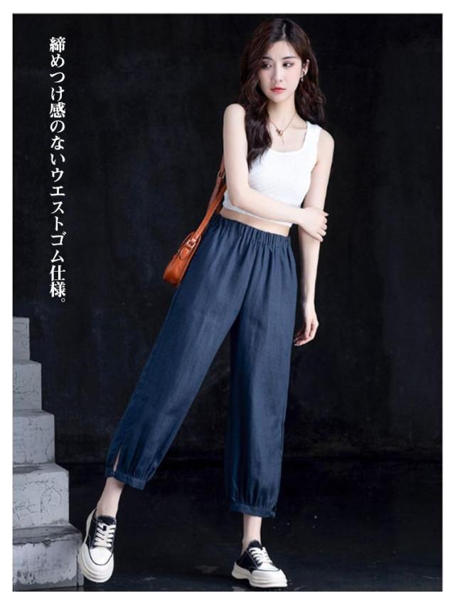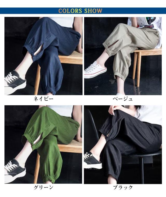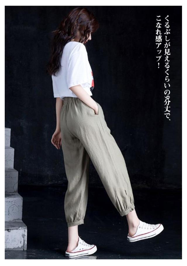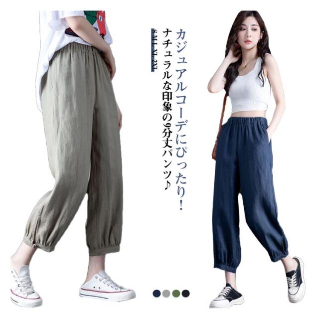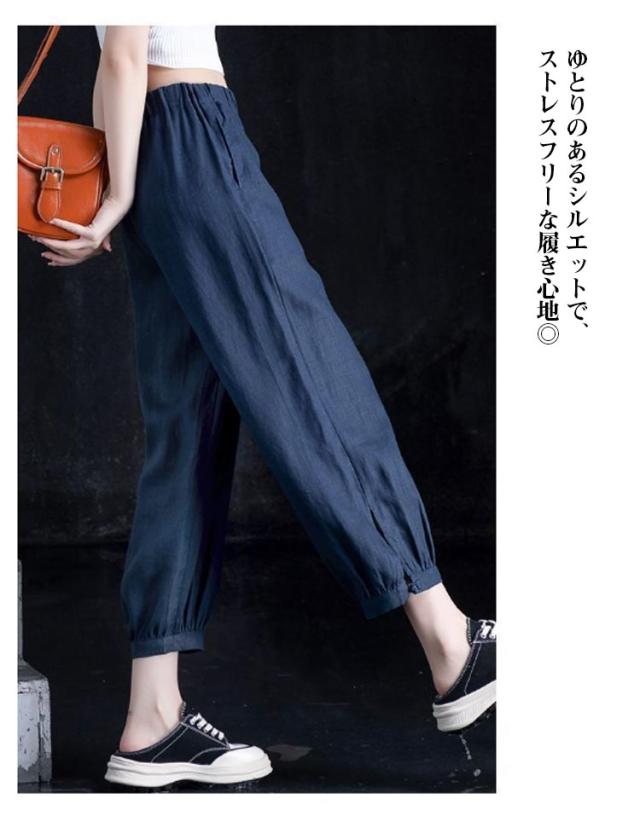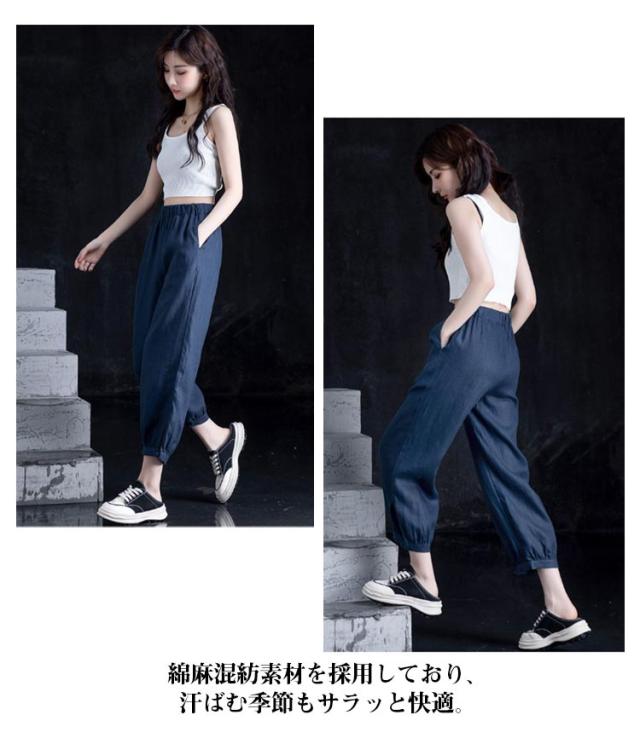 サルエルパンツ 夏 レディース 綿麻風 九分丈 カジュアルパンツ リネンパンツ 薄手 通気性 ウエストゴム ゆったり ズボン 体型カバー サマーパンツ 無地 シンプル