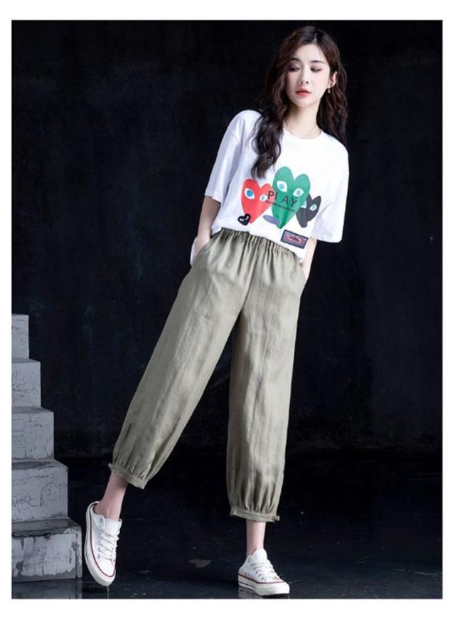 | カジュアルコーデにぴったり!ナチュラルな印象の9分丈パンツ♪ 綿麻混紡素材を採用しており、汗ばむ季節もサラッと快適。 締めつけ感のないウエストゴム仕様。 ゆとりのあるシルエットで、ストレスフリーな履き心地◎ くるぶしが見えるくらいの9分丈で、こなれ感アップ! | |