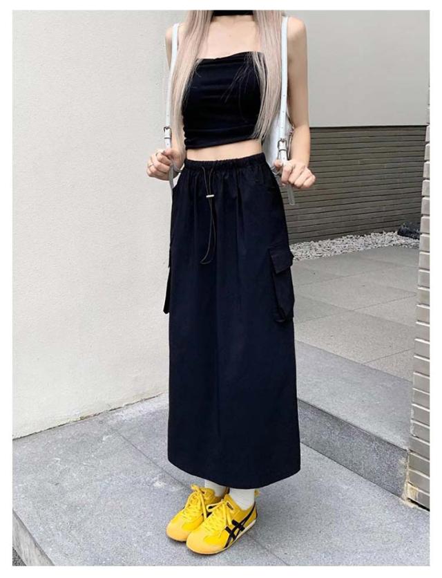 | ・カーゴロングスカート ・カーゴパンツのディテールを取り入れたロングスカート ・シンプルで合わせやすく、様々なトップスと好相性◎ | |
