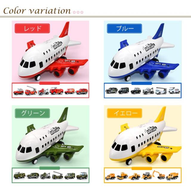 | 飛行機 おもちゃ 1つの大きな飛行機のおもちゃのキャリアと6個の異なるテーマの車両が含まれています。 航空機のドアを開いて複数の車のおもちゃを積み込むことができ、航空機のキャビンをスライドとして使用して、 おもちゃの車をスライドさせることができます。 鮮やかな色で子どもの遊び興味を刺激します。 | |