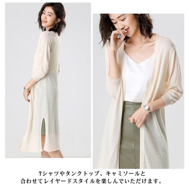 | 透け感が女性らしいロングカーディガン。 ゆったりしたロングサイズなので体型カバー効果も◎ Tシャツやタンクトップ、キャミソールと合わせてレイヤードスタイルを楽しんでいただけます。 夏の冷房対策や紫外線対策としても重宝すること間違いなしです | |