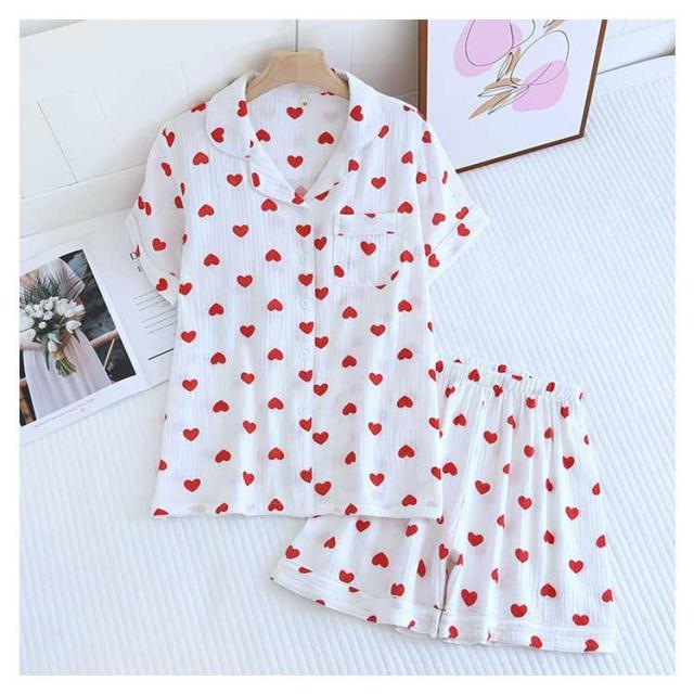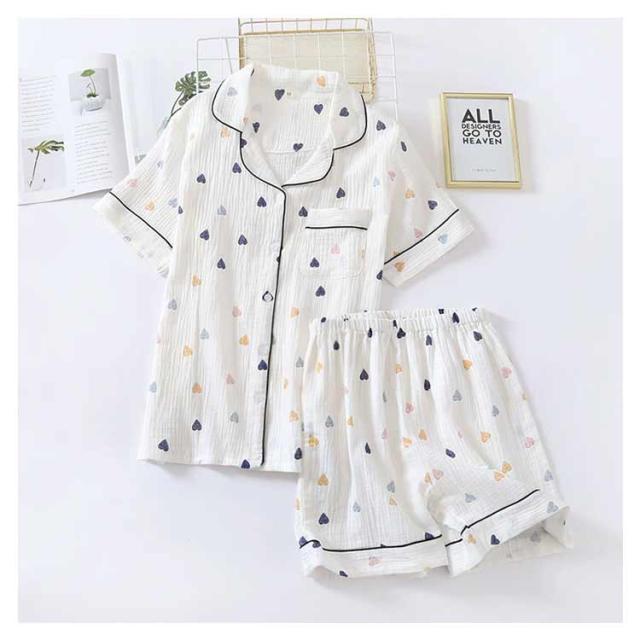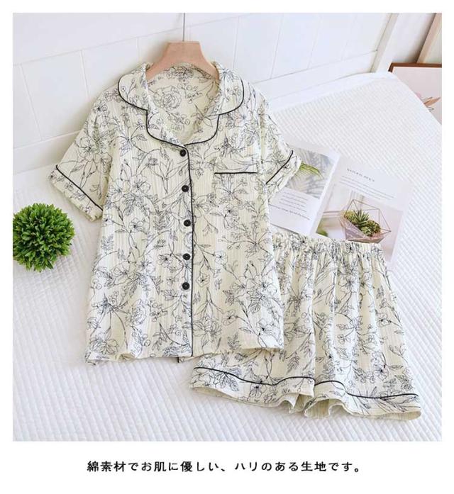 ダブルガーゼ パジャマ ガーゼ レディース 夏 半袖 tシャツ ハーフパンツ 綿 総柄 ルームウェア 二重ガーゼ ナイトウェア セットアップ 上下セット トップス ショート 丈 パンツ ウエストゴム 大人 可愛い ふんわり 着心地 ゆったり