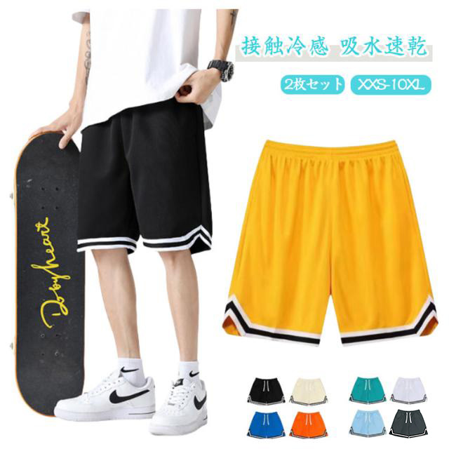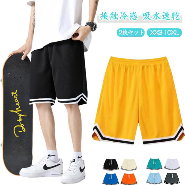 2枚セット ハーフパンツ 接触冷感 吸水速乾 ドライ メンズ バスパン バスケパンツ 軽量 UV対策 ショートパンツ ストレッチ 5分丈 運動着
