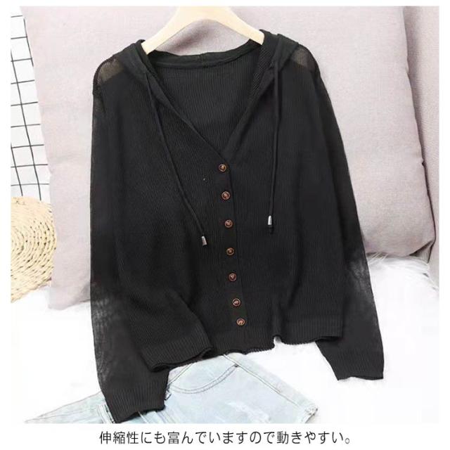 ニットカーディガン カディガン Vネック サマーカーディガン フード付きカーディガン 羽織り ニットカーディガン 薄手 ニットパーカー カーデ 送料無料 透け感 カーデ 無地 サマー シンプル 冷房対策 大人 かわいい