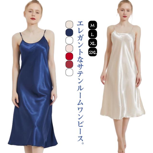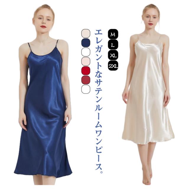 ルームワンピース ワンピース レディース ペチコート サテンキャミ キャミソール ロングワンピース キャミワンピ ルームウェア サテン ロングキャミ インナー キャミワンピース サテン 大人 かわいい エレガント