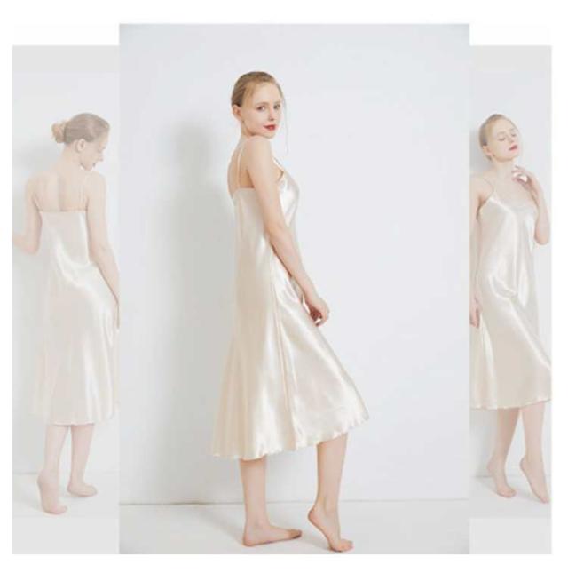 | エレガントなサテンルームワンピース。 しわになりにくく滑らかで上質な光沢感があるサテンタッチ生地は、さらっとした肌触りが軽やかな印象を与えます。 1枚でルームウエアや部屋着などとしても活躍するアイテムです。 | |