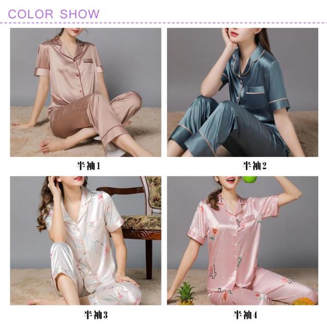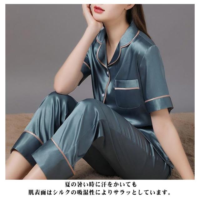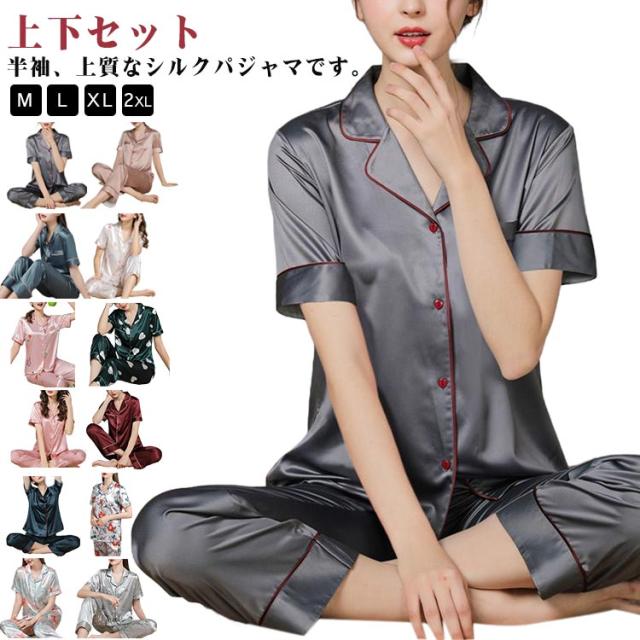 送料無料 レディース 部屋着 ルームウェア 前開き 春 半袖 上下セット ルームウェア シルク シルクパジャマ セットアップ M おしゃれ おうち時間 リラックスタイム ナイトウェア 夏 送料無料 L XL 2XL