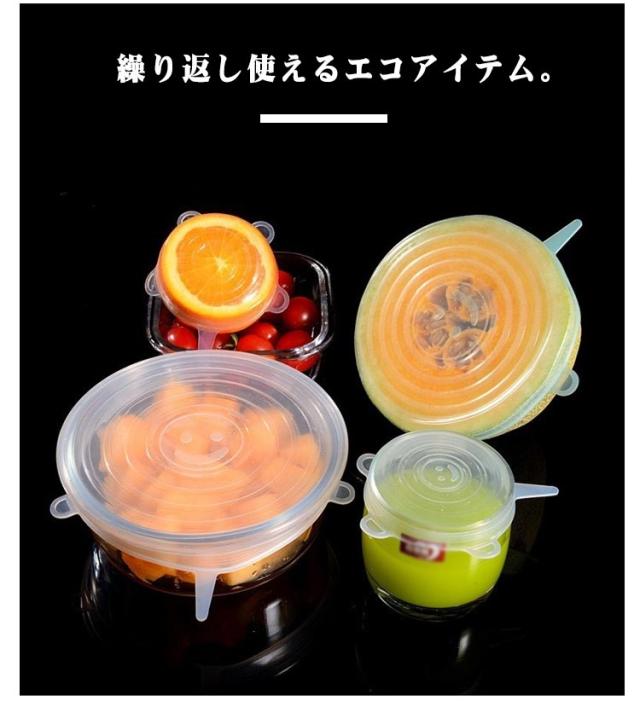 食品ラップ 6点セット シリコンラップ シリコン蓋 保存 シリコン製 繰り返し使える エコ エコラップ 節約 ラップ 6点セット 丸い シリコン シリコン蓋 全6サイズ 密閉 液体漏れしにくい マルチラップ 耐熱