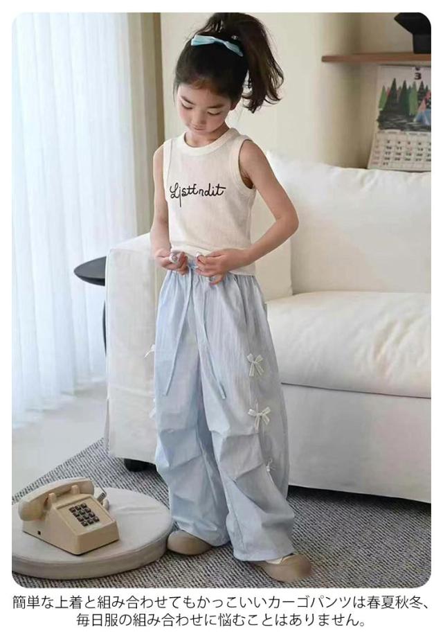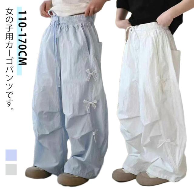 ガールズ ゆったり ロングパンツ 長ズボン 通気性 ガールズ カーゴパンツ 子供服 ワイドパンツ 快適 ダンスウェア 無地 履きやすい ジュニア 学生 カジュアル 110 120 130 140 150 160