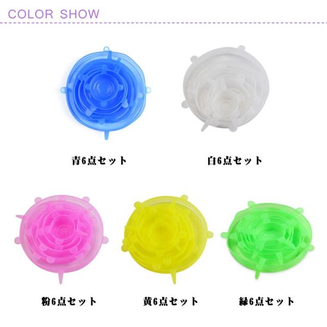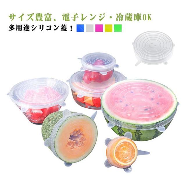 シリコン蓋 節約 シリコン蓋 シリコン 食品ラップ ラップ シリコンラップ エコ 6点セット 丸い 保存 エコラップ 蓋 シリコン製 繰り返し使える 全6サイズ 密閉 液体漏れしにくい マルチラップ 耐熱