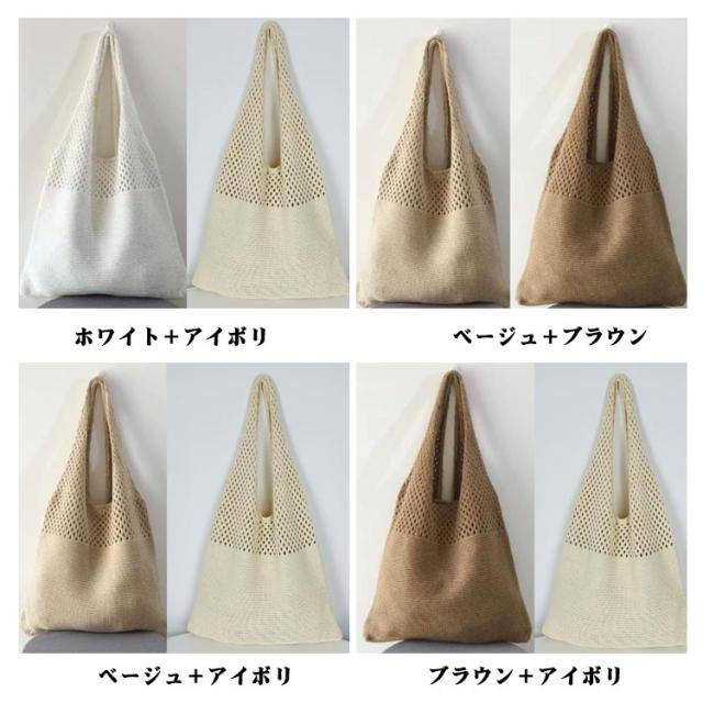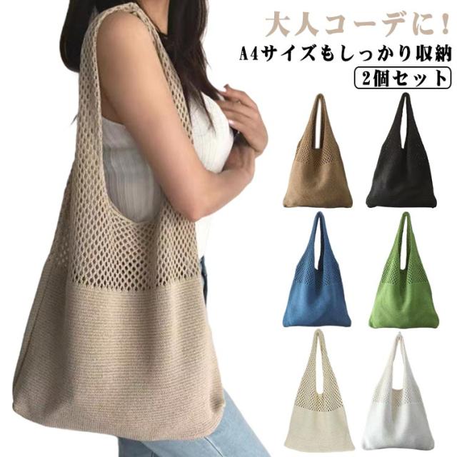 2個セット 透かし編み かぎ編みバッグ 大人 軽量 肩掛け ニットバッグ ニットトートバッグ 大きめ bag 大容量 クロシェ ランチトート マルシェバッグ お出かけ レッスンバッグ おしゃれ 可愛い 海水浴 プレゼント ギフト レディース メンズ 男女兼用