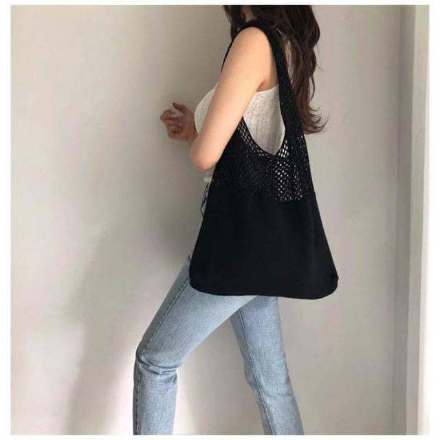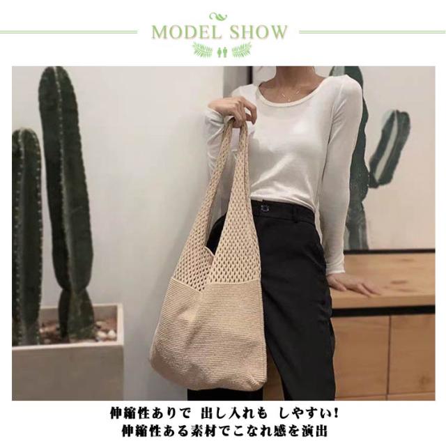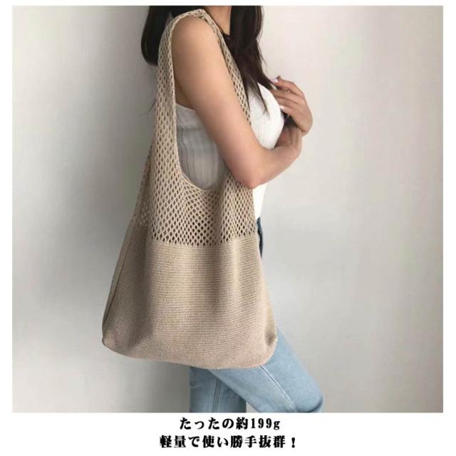 | 大人コーデに! A4サイズもしっかり収納 伸縮性ありで 出し入れも しやすい! 伸縮性ある素材でこなれ感を演出 ハンドルが 幅広仕様で 肩掛けが らくちん 透かし編みが涼しげな トートバッグ たったの約199g 軽量で使い勝手抜群! | |