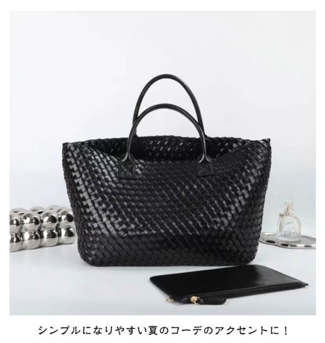 トート トートバッグ ハンドメイドバッグ かごバッグ PUレザー トートバッグ 編み込み PUレザー メッシュ トートバッグ 大人 籠バッグ バッグ バスケット トートバッグ インナーポーチ付き 多機能