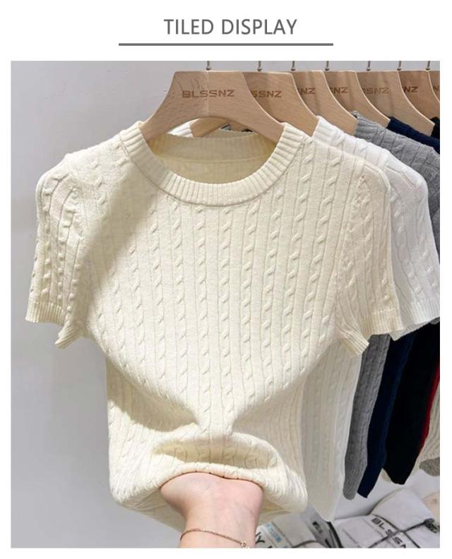 | 韓国風のプルオーバー仕様のレディースサマーニットです ケーブル編みがアクセントになり、きれいめな印象を作る。 縦ラインのケーブル編み仕様、立体感を作っておしゃれで可愛いです。 伸縮性とゆとりが有るサイズ感が締め付け感がない着こなしが叶えるポイントです。 半袖でこれからの季節にご活躍頂けるカットソー。 | |