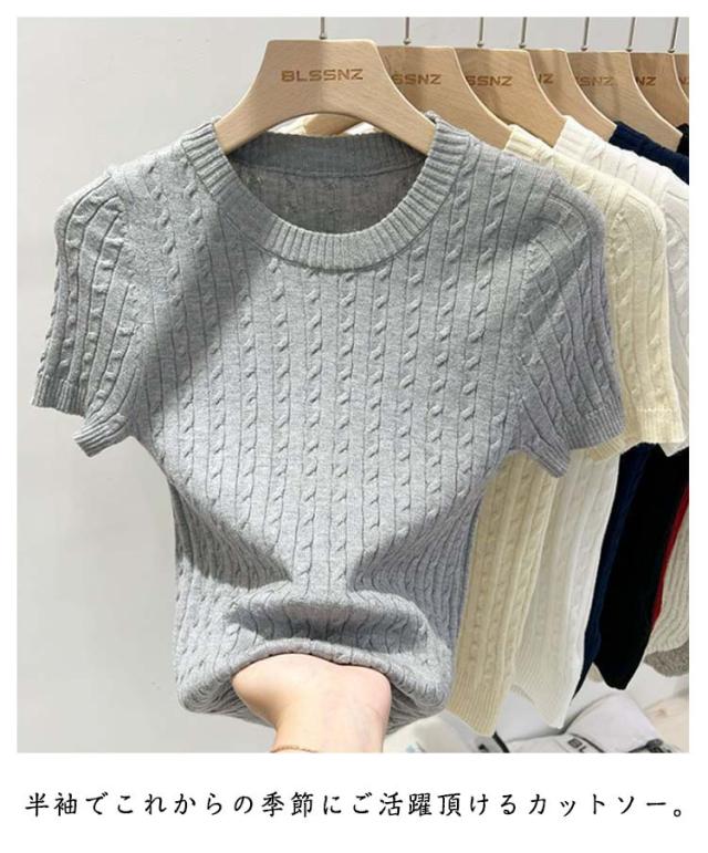 選べる9色 トップス ニット セーター サマーニット 通勤 伸縮性 クールネック 通気 可愛い ケーブル おしゃれ ゆる感 半袖 レディース 柔らか プルオーバー カットソー 普段着 選べる9色 オフィスカジュアル 細見え 着痩せ