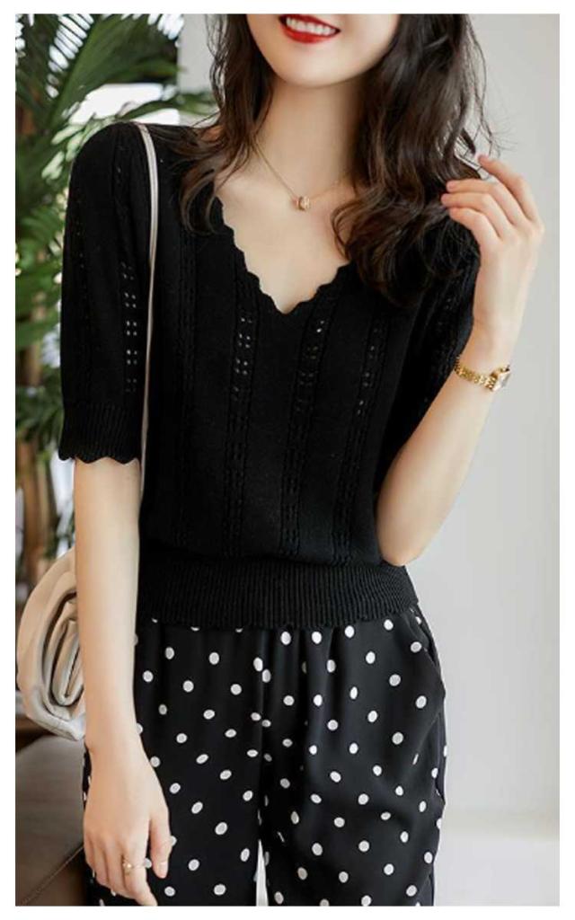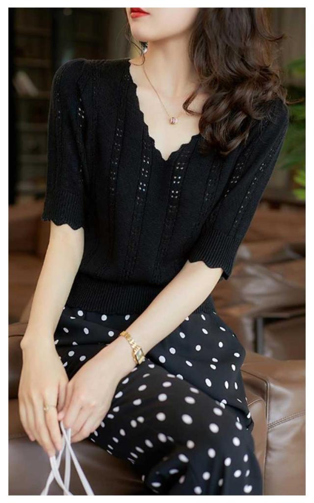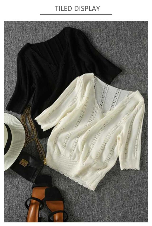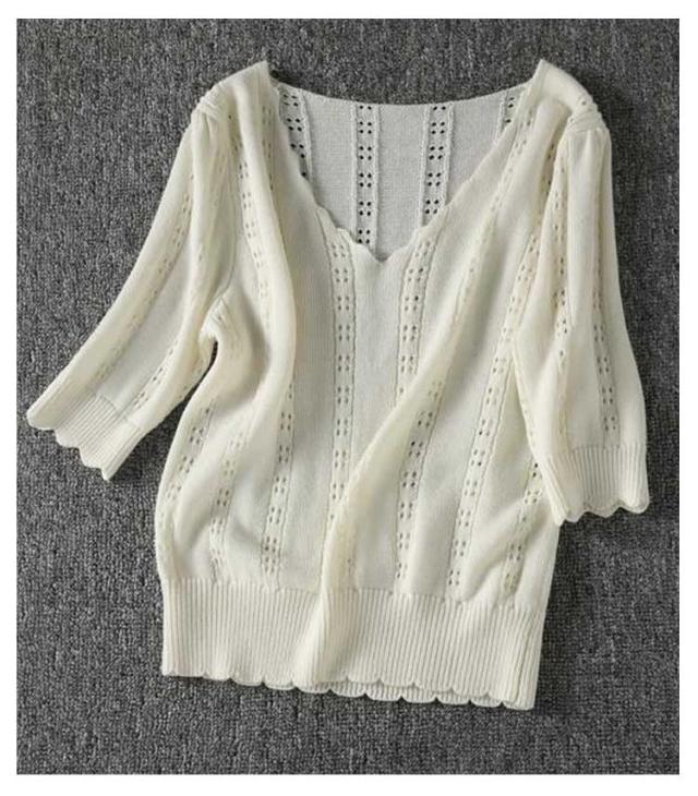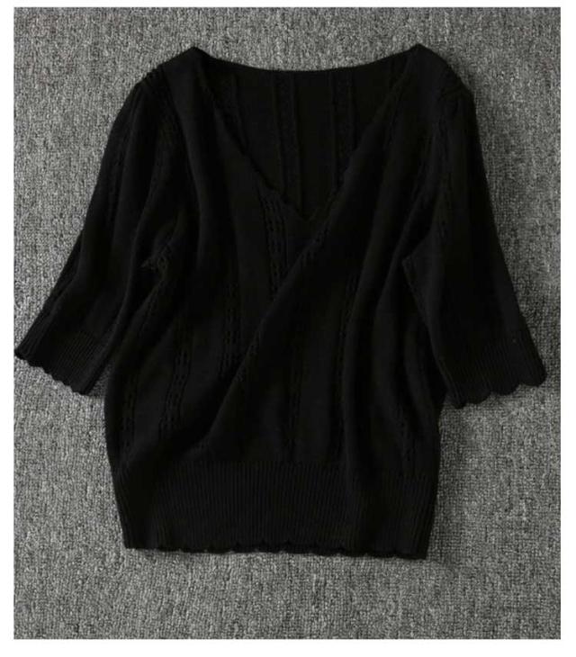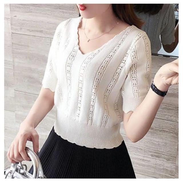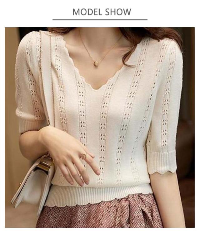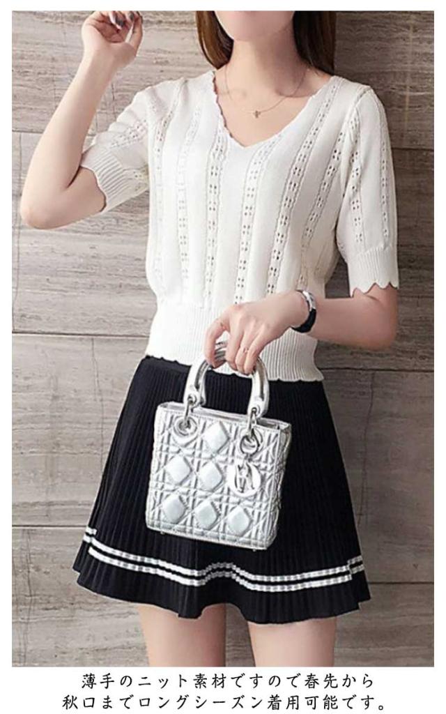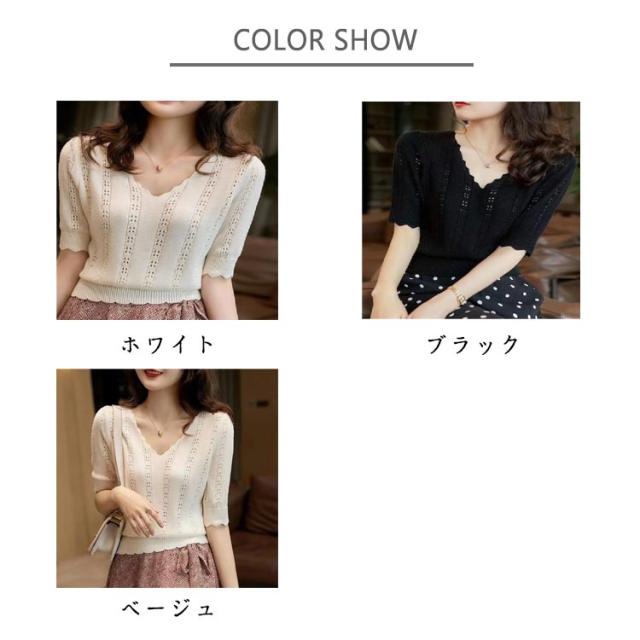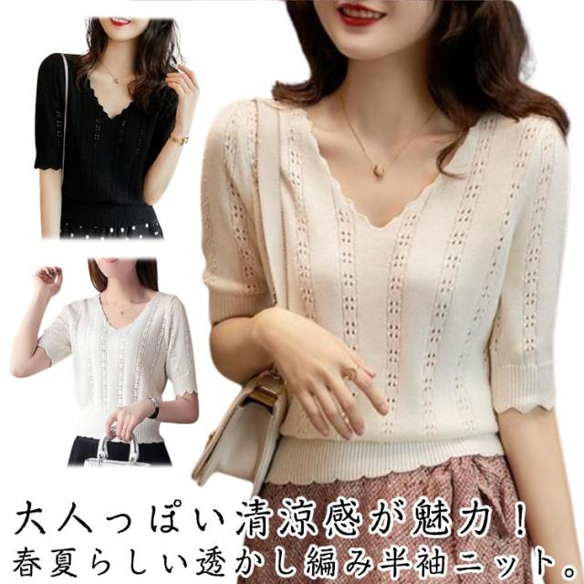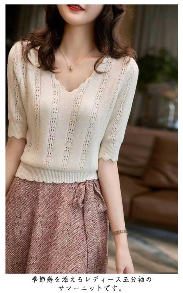 セーター Vネック 半袖 通気 シンプル 透かし編み レディース ニット 快適 涼しい Vネック 五分袖 サマーニット 無地 伸縮性 着回し力 サマーセーター カットソー トップス おしゃれ 夏 冷房対策 きれいめ