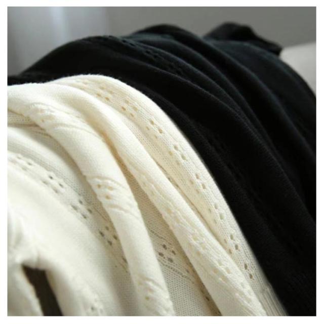 | 大人っぽい清涼感が魅力!春夏らしい透かし編み半袖ニット。 季節感を添えるレディース五分袖のサマーニットです。 軽やかな雰囲気は女性らしいデザインに仕上げました。 スッキリとしたシルエットとイージーな着心地は、オンオフ兼用で着用できる一枚。 薄手のニット素材ですので春先から秋口までロングシーズン着用可能です。 | |