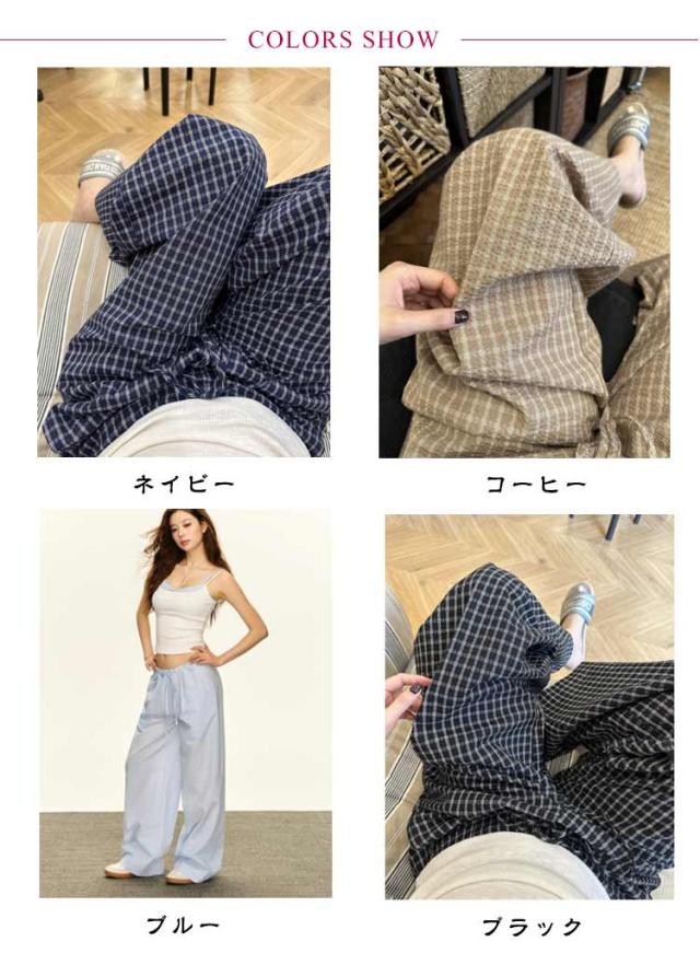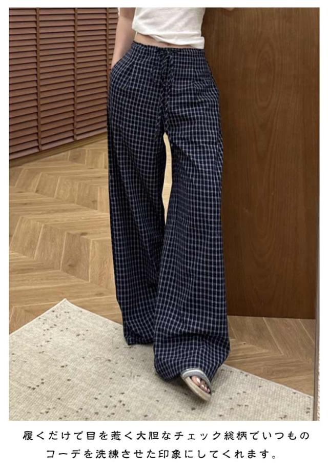 レディース パンツ パンツ 美脚 ゆったり ワイドパンツ ズボン 体型カバー ワイドパンツ ボトムス チェックパンツ 落ち感素材 チェック イージーパンツ 大人可愛い ナチュラル カジュアル服 ゆったり ウエストゴム 春 夏