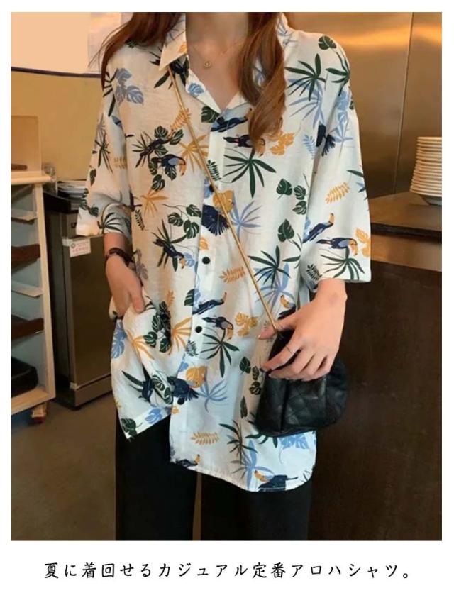 柄シャツ 半袖 アロハシャツ ゆったり リーフ柄 ボタニカル レトロ アロハシャツ プリント ブラウス 羽織り ファッション ハワイシャツ ビーチウェア 花柄 トップス リゾート 旅行