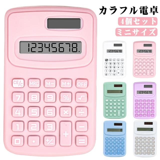 おしゃれ かわいい ミニ卓上 4個セット ミニ卓上 カラフル 電卓 ステーショナリー ミニジャストタイプ カラフル電卓 ミニジャストタイプ 8桁 オフィス用品 事務用品 計算機 文房具 計算機 事務用品 デスク用品 文房具