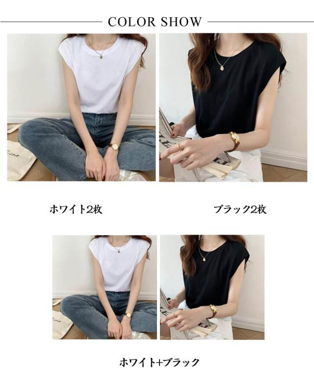 2枚セット!タンクトップ 無地 トップス クルーネック ノースリーブ レディース 通気性 Tシャツ 着痩せ 柔らか 涼しい 2枚セット!タンクトップ カジュアル お洒落 重ね着 フレンチスリーブ オフィス 通勤 日常用 夏物