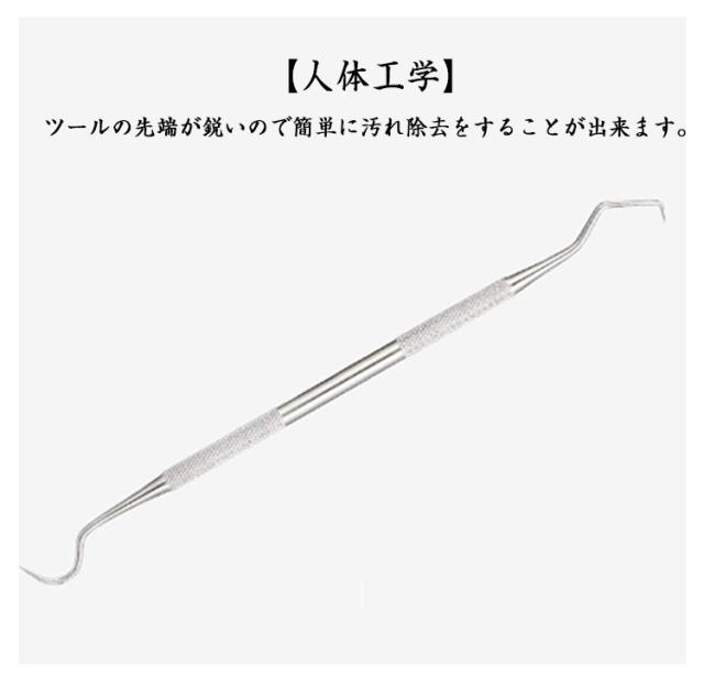 | 【歯用ツール7点セット】【ステンレス製】 高級ステンレス製歯用ツール、ご家庭でも使えるプロ用セット。 自宅で本格汚れ除去、充実の7点セット。 初心者にも安全安心の高級ステンレス製。 自宅で手軽に 食べかす、歯石、歯垢、虫歯、色素沈着に、本格的な口内ケアを。 ワンちゃんの健康維持に大事な犬歯ケアーにも。 【人体工学】ツールの先端が鋭いので簡単に汚れ除去をすることが出来ます。 耐久性と防カビ性にすぐれ、滑り止め設計されているので持ちやすい。 | |