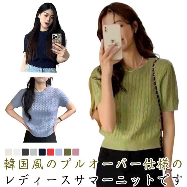 通気 レディース 半袖 ニット セーター 伸縮性 トップス クールネック 選べる9色 薄手 ケーブル おしゃれ 可愛い 選べる9色 ゆる感 柔らか プルオーバー カットソー 普段着 通勤 オフィスカジュアル 細見え 着痩せ