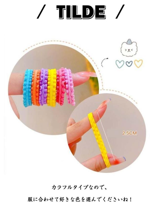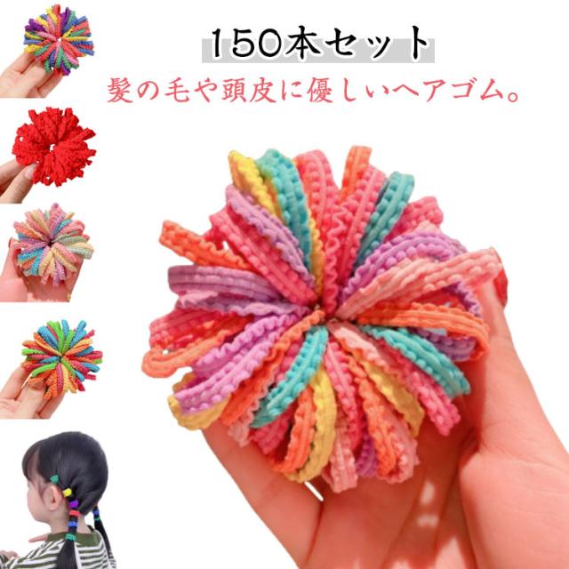 | 【150本セット】 髪の毛や頭皮に優しいヘアゴム。 カラフルタイプなので、服に合わせて好きな色を選んでくださいね! お子さんの髪に絡まないので、痛くないヘアゴムです 赤ちゃんのやわらかい髪にも使用可能です。 簡単に可愛くヘアアレンジが出来ます。 複数色を組み合わせても、オリジナリティのあるヘアアレンジをお楽しみください。 | |