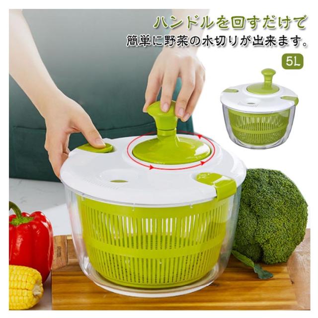 サラダ サラダ水切り 大容量 野菜水切り器 5L 野菜 水切り 手動 回すだけ 水切り器 回転式 スピナー 野菜脱水機 大きめ 野菜 野菜水切り器 ボウル サラダ ザル キッチン便利グッズ お手入れ簡単 調理器具 ストッパー付き ハンドル付き シンプル おしゃれ