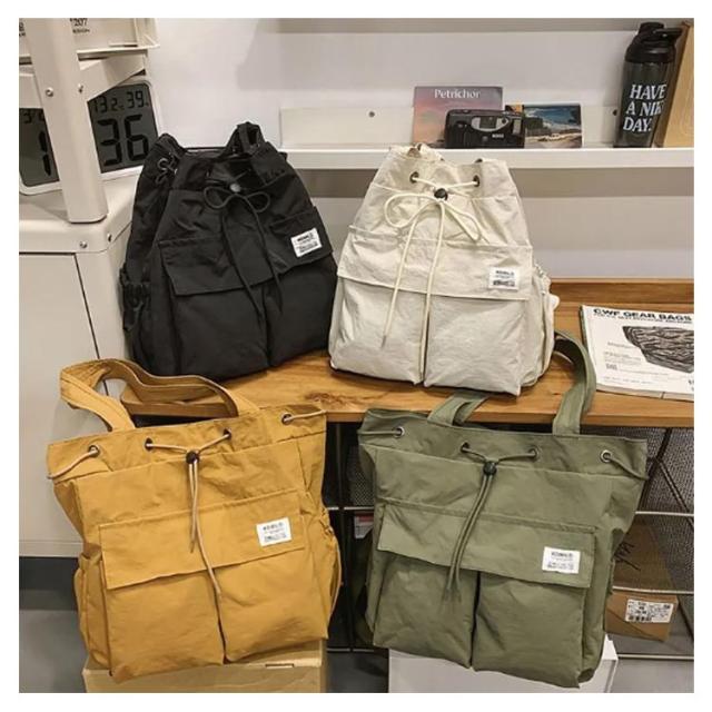 | A4サイズ対応で、肩掛けとしてもリュックとしてもお使いいただける2wayバッグ。 トートもリュックもできますので、気分により楽しく使えます。 軽量で上品な光沢のあるナイロン素材は雨や汚れに強いのが嬉しい A4やiPadや500mlペットボトル、ハンディファン、三つ折り財布、ハンカチ、ポーチなどが入る大容量サイズ! フロントポケットには小物、サイドポケットにはペットボトルや折り畳み傘も入れられ、使い勝手抜群です。 カチッとしたスタイルにもカジュアルスタイルにも対応できる多機能マルチバッグです! | |