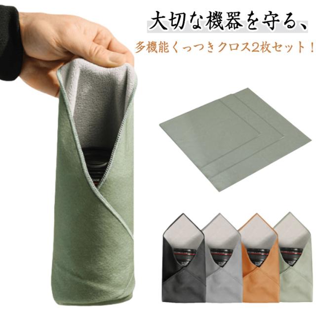 くっつきクロス くっつきタオル 【2枚セット】 保護クロス カメラ用ラップ クリーニングクロス ピタッとクロス カメラバッグクロス 傷防止 レンズ/スマホ/タブレットの保護 持ち運び コンパクト