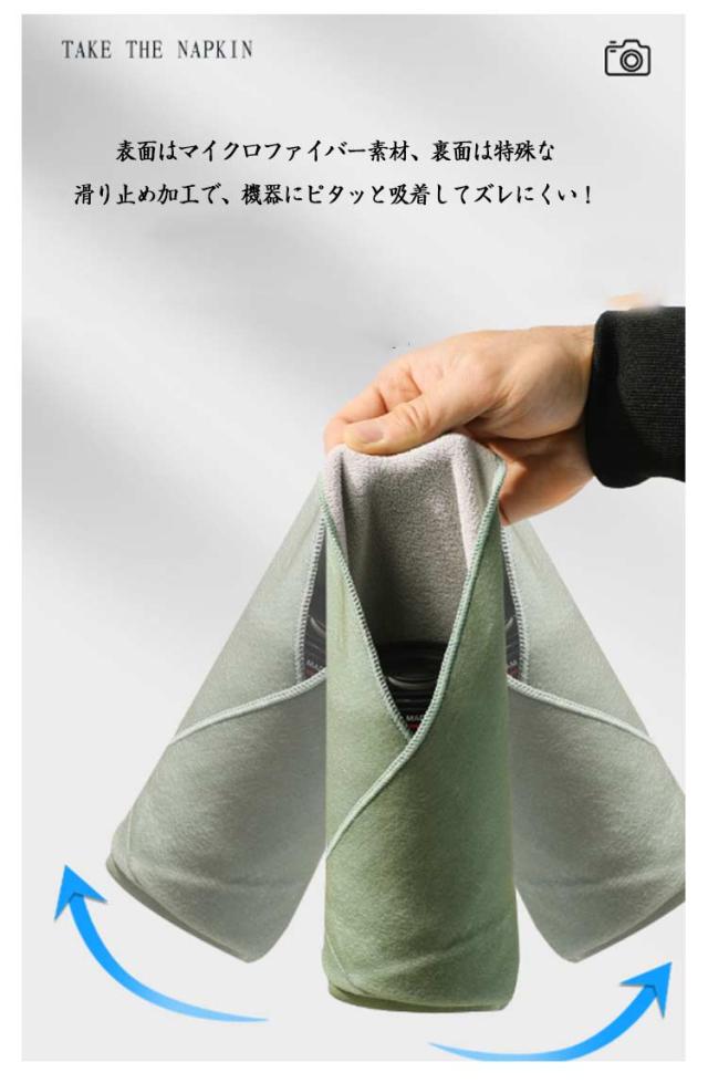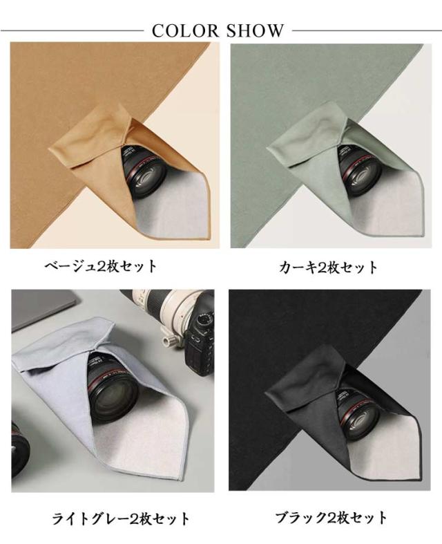 | 大切な機器を守る、多機能くっつきクロス2枚セット! 表面はマイクロファイバー素材、裏面は特殊な滑り止め加工で、機器にピタッと吸着してズレにくい! カメラバッグ内の仕切り・収納や、レンズのラップとしても使える便利なサイズ感。 ほこり・傷・衝撃から機器をしっかりガードし、持ち運びにも安心です。 折りたたんでコンパクトに収納可能。撮影時・外出時にも大活躍! | |
