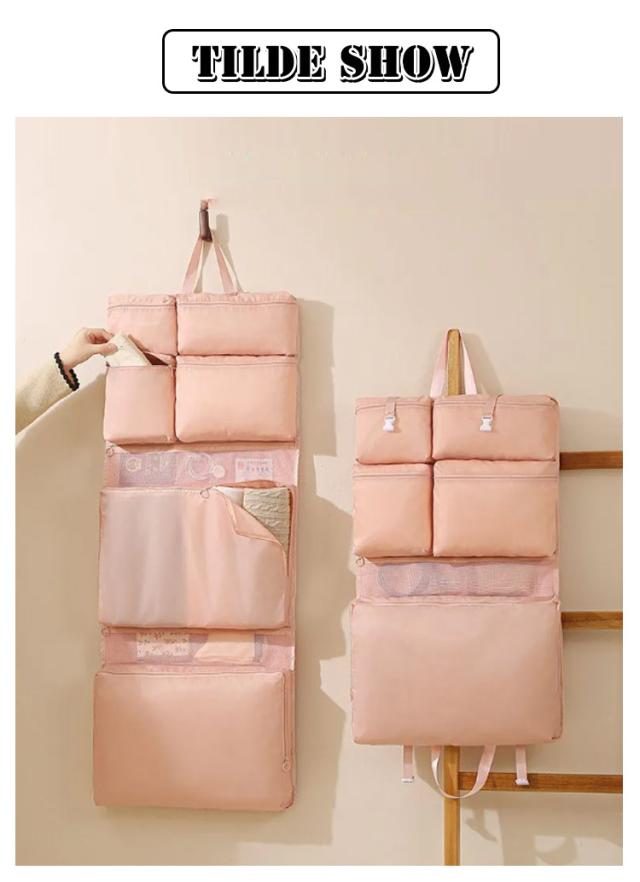 | 吊り下げトラベルポーチ。【2個セット】 大容量なので、旅行に必要なものをすべて収納できます。メインポケットは広々としており、複数のコンパートメントを備えた 4 つのセクションに分かれております。 ポリエステルの生地とメッシュ素材を採用しているので通気性が良い。 旅行または出張時に衣類、ネクタイ、帽子やタオルなどの荷物がすっきり収納できます。 幅広い用途:家のクローゼットだけでなく、学生寮、旅先のホテル、キャンプや車中泊などの場合も使用できます。 | |