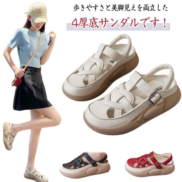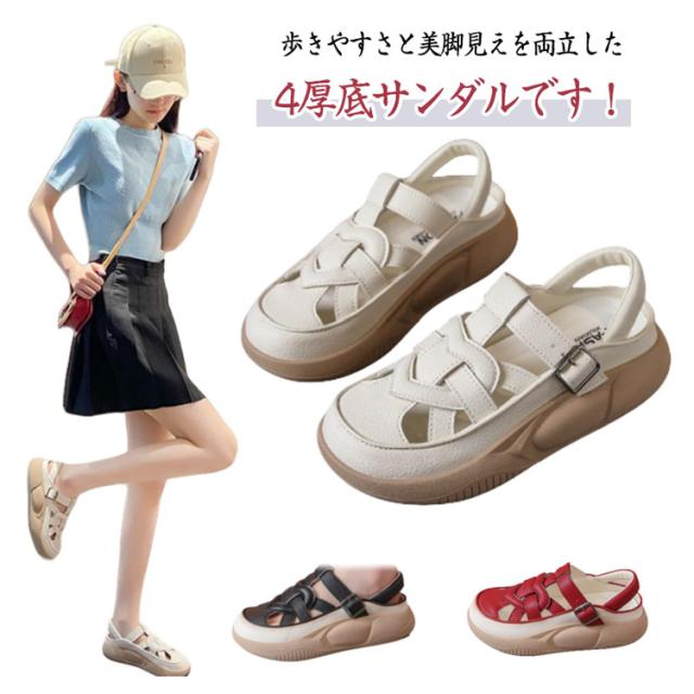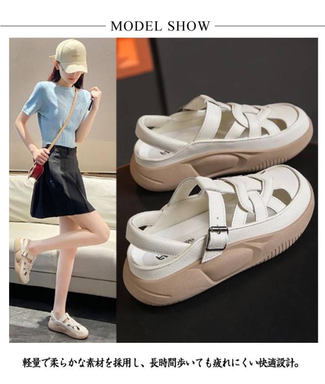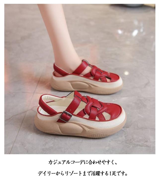 通気性 レディース 厚底 歩きやすい カジュアルサンダル 袴用 通勤 カジュアル 通学 サンダル 前塞がり サンダル 厚底スリッポン カジュアル 軽量 滑り止め 美脚効果 春夏 ウォーキングシューズ