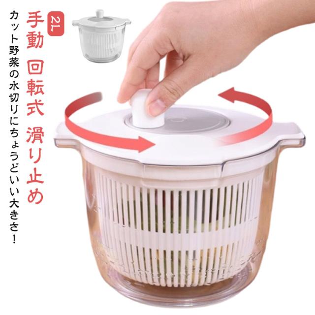 コンパクト サラダスピナー サラダ 手動 水切り器 小さめ 野菜 回すだけ サラダ 回転式 サラダ水切り 野菜水切り 滑り止め 野菜水切り器 小 2L 野菜 野菜脱水機 水切り ミニ ボウル ザル サラダスピナー キッチン便利グッズ