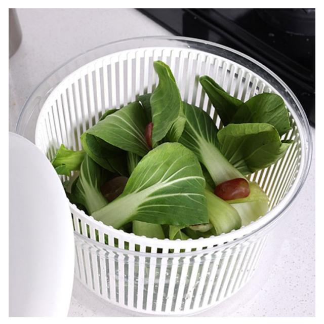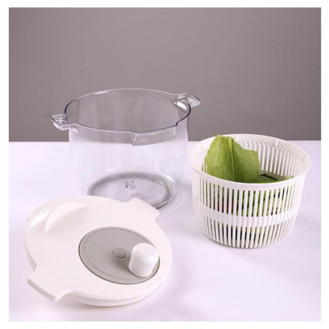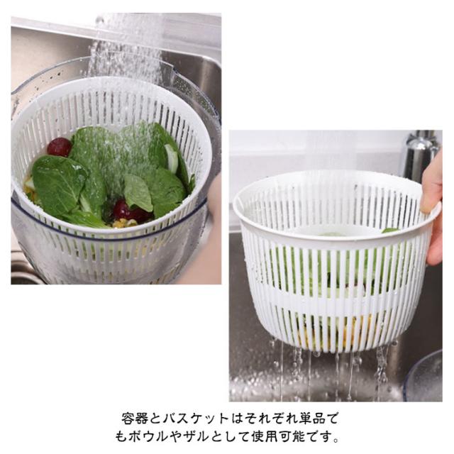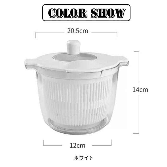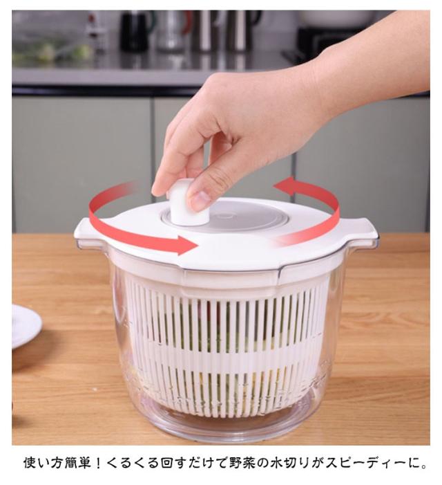 | カット野菜の水切りにちょうどいい大きさ!【2L】 使い方簡単!くるくる回すだけで野菜の水切りがスピーディーに。 一般的なサイズよりも小さめなので、一人暮らしの方や、少量のサラダだけ水切りしたい方にぴったりです! 容器とバスケットはそれぞれ単品でもボウルやザルとして使用可能です。 容器底面には滑り止め付き。 | |