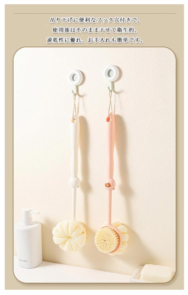 長柄ブラシ ボディブラシ 2WAY バスブラシ バスグッズ ロングハンドルブラシ 極細毛 両面ブラシ ソフトブラシ バススポンジ 柔らか 背中 お風呂グッズ バス用品 柔らかい ボディブラシ 吊り下げ収納