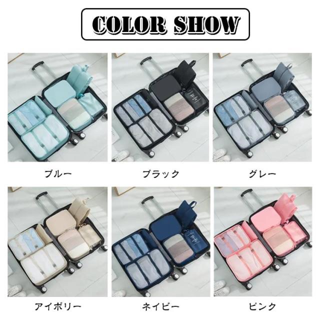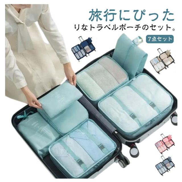 | 旅行にぴったりなトラベルポーチのセット。 シンプルで使いやすいなデザインが◎ 洋服などを日にちごとに分けたり、メイク道具や入浴セットなどを入れるのにも最適です! スーツケースの中身をスッキリ整理可能! トラベルアイテムを快適にサポーティングしてくれる様々なタイプのポーチが7点セットになったアイテムが登場。 傷みにくく、シワになりにくいポリエステルを使用したテクスチャーで、移動の多いアクティブな旅にも最適なひと品です。 コスメ、スキンケアなどを小分けにするのは勿論、下着などオブラードに運びたい物にもお勧め。 単品使いでデイリー使用ももちろんOKです! 洋服などを日にちごとに分けたり、入浴セットなどを入れるのにも最適です! カバンの整理やちょっとしたお出掛け用のポーチとしてもご使用頂けます! | |