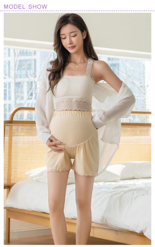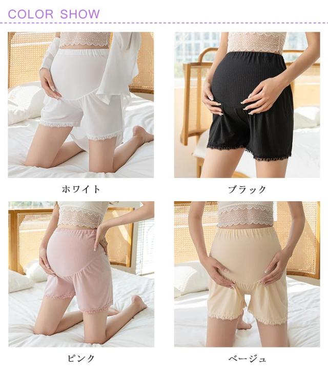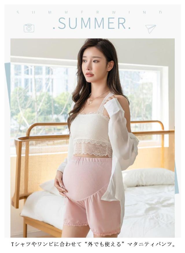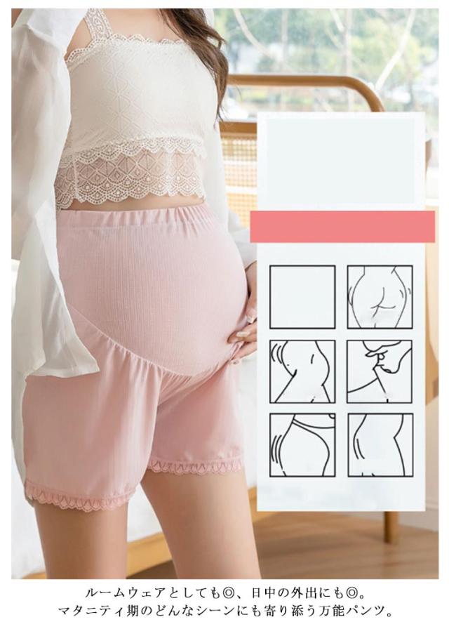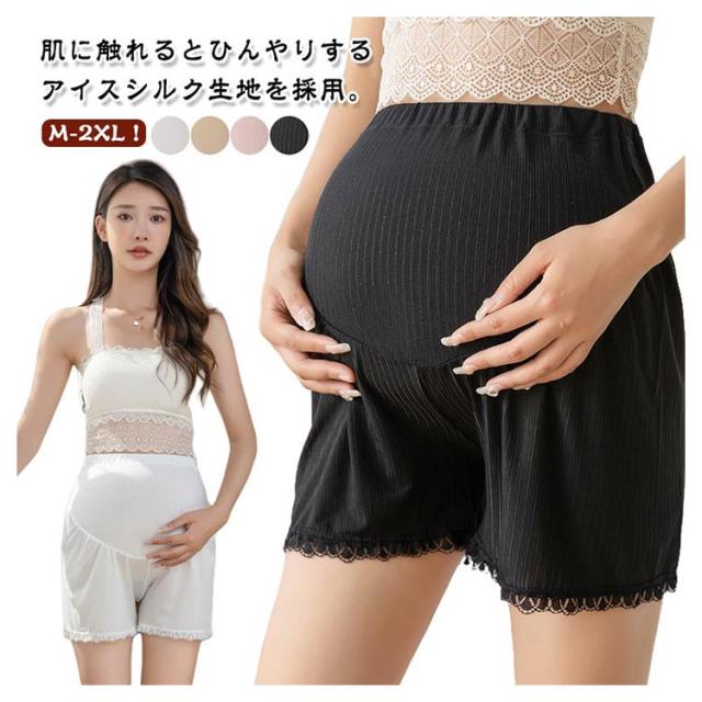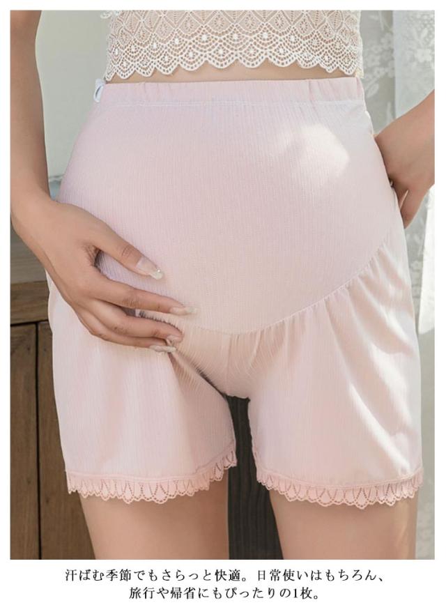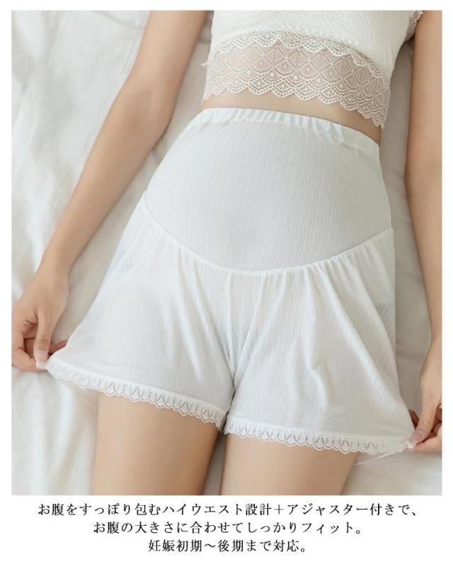 夏用 マタニティショートパンツ ペチパンツ ペチコート レースインナー 夏服 マタニティショートパンツ 妊婦ズボン ハイウエストパンツ ウエスト調整可能 3分丈 産前産後 通気性 妊婦レースショーツ 薄手 冷房対策 ママ マタニティ服 透け防止