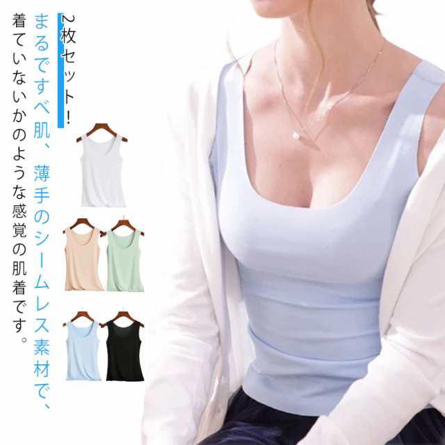 2枚セット! 接触冷感 インナー 2枚セット! 部屋着 下着 薄手 涼感 レディース 冷感 吸水速乾 タンクトップ 肌着 Uネック レイヤード ひんやり 見えない キャミソール さらさら素材 爽やか速乾 大きいサイズ