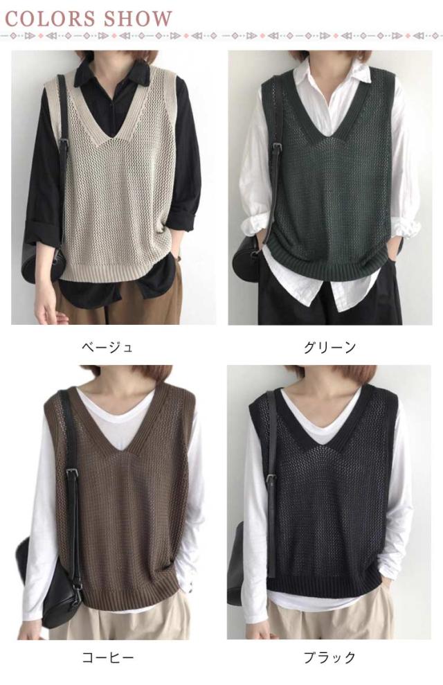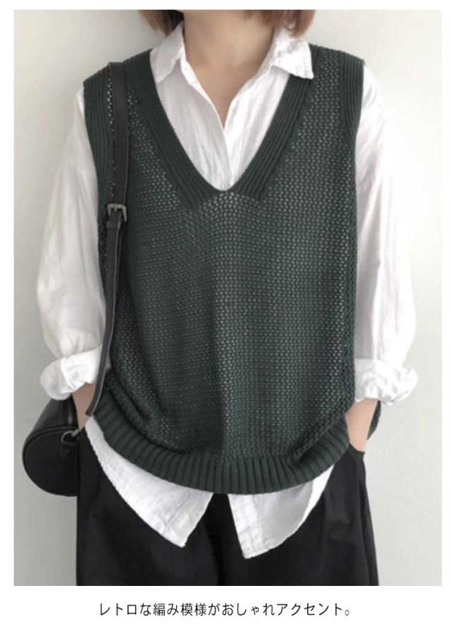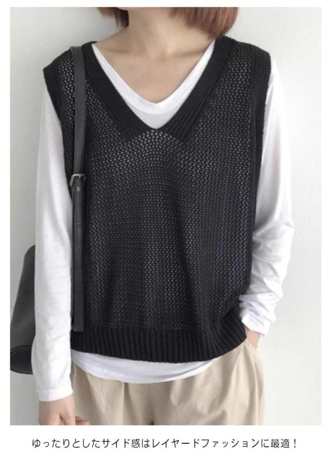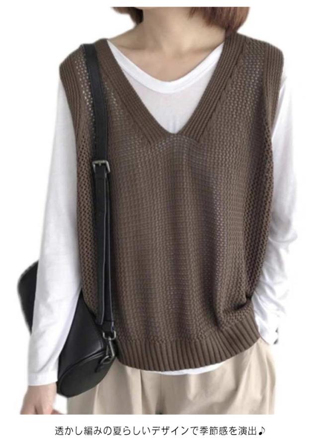 ニットベスト プルオーバー チョッキ レディース 無地 透かし編み レイヤード Vネック ニット ノースリーブ シアーニット ニットジレ おしゃれ 重ね着 透かし編み 春夏 シアー セーター ゆったり 冷房対策 クルーベスト シンプル 体型カバー カジュアル 20代 30代 40代 50代