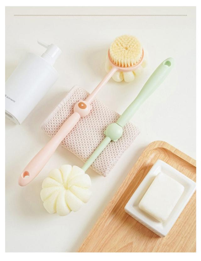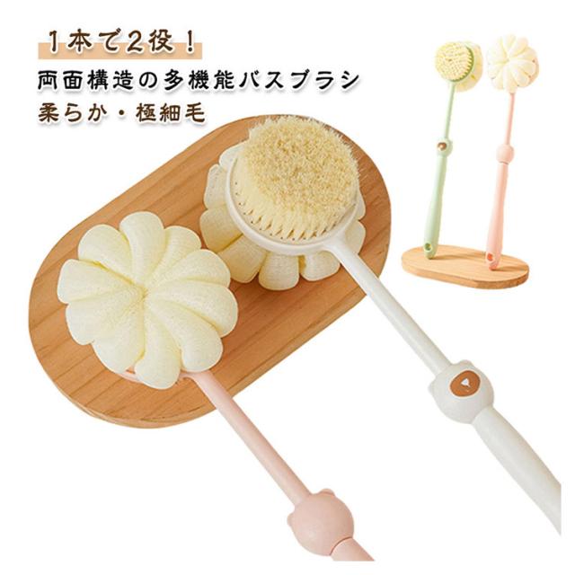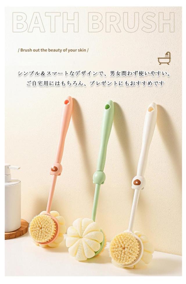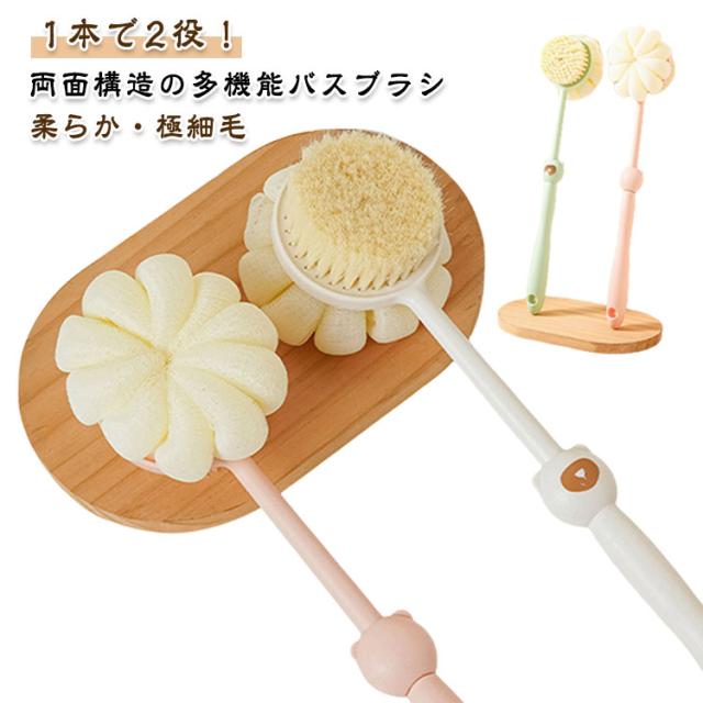 ボディブラシ ボディブラシ バスブラシ 泡立てブラシ バススポンジ 両面ブラシ ロングハンドルブラシ 柔らか ソフトブラシ 2WAY バスグッズ 背中 お風呂グッズ バス用品 柔らかい 長柄ブラシ 吊り下げ収納