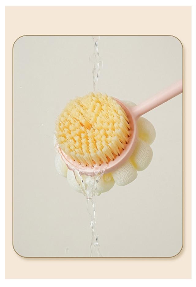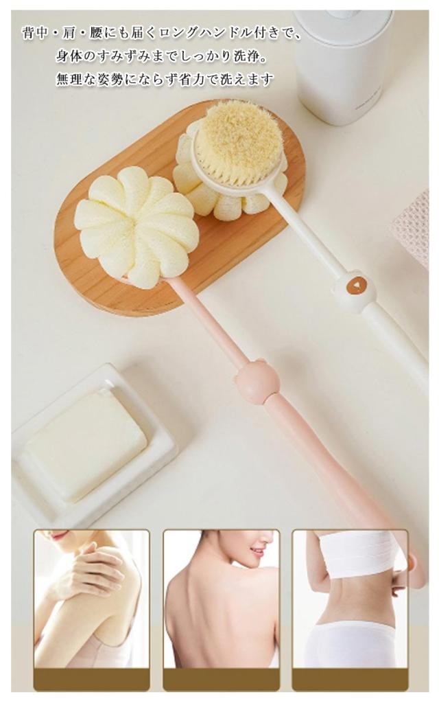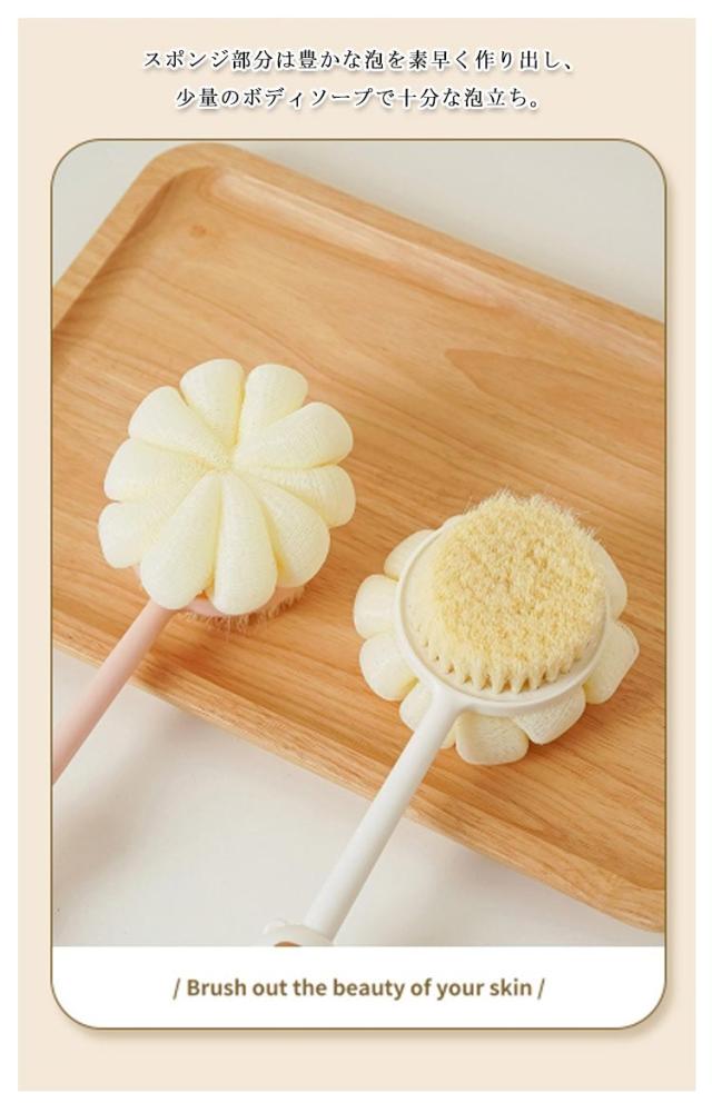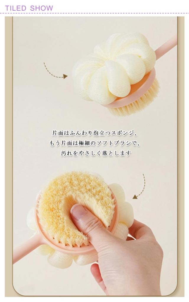| 1本で2役!両面構造の多機能バスブラシ。片面はふんわり泡立つスポンジ、もう片面は極細のソフトブラシで、汚れをやさしく落とします 背中・肩・腰にも届くロングハンドル付きで、身体のすみずみまでしっかり洗浄。無理な姿勢にならず省力で洗えます スポンジ部分は豊かな泡を素早く作り出し、少量のボディソープで十分な泡立ち。 ブラシ面は柔らかい毛で、デリケートな肌にもやさしい使い心地。しっかり洗えるのに肌を傷つけにくい安心設計 吊り下げに便利なフック穴付きで、使用後はそのまま干せて衛生的。速乾性に優れ、お手入れも簡単です。 シンプル&スマートなデザインで、男女問わず使いやすい。ご自宅用にはもちろん、プレゼントにもおすすめです | |